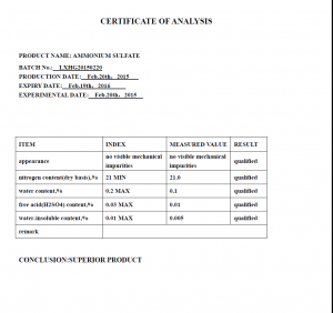 Ammonium Sul Capro, COA